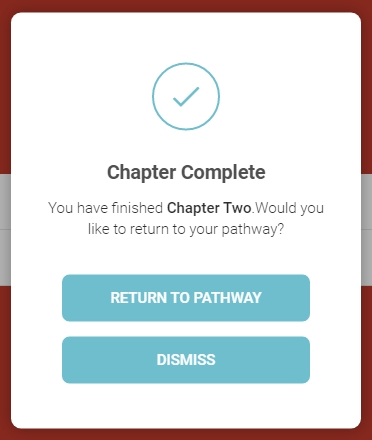 After completing a chapter, the user will be prompted to return to the pathway or continue the story.